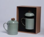 Product Name: Celadon Mug with Pomegranate Finial Lid & Qinling Four Treasures Motif