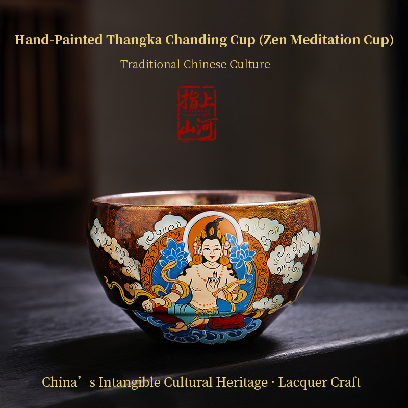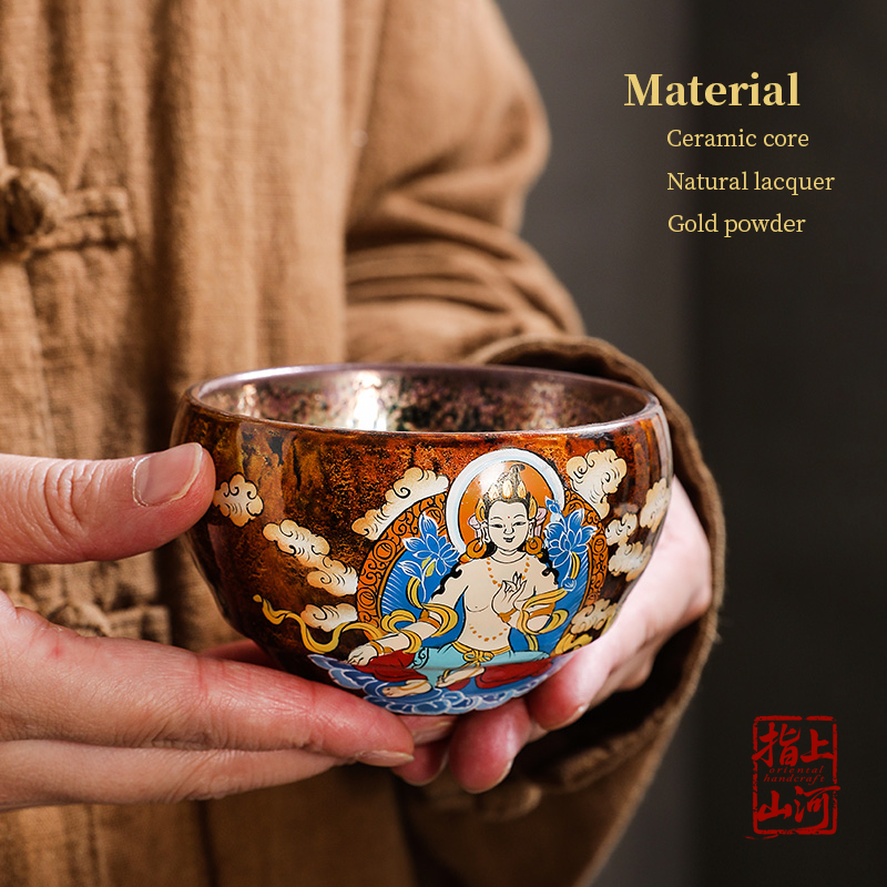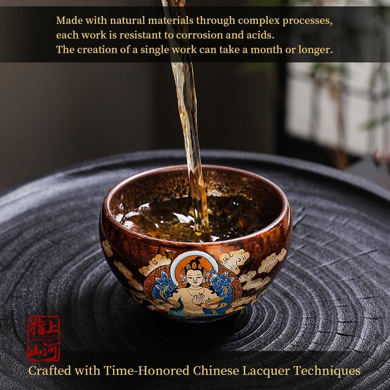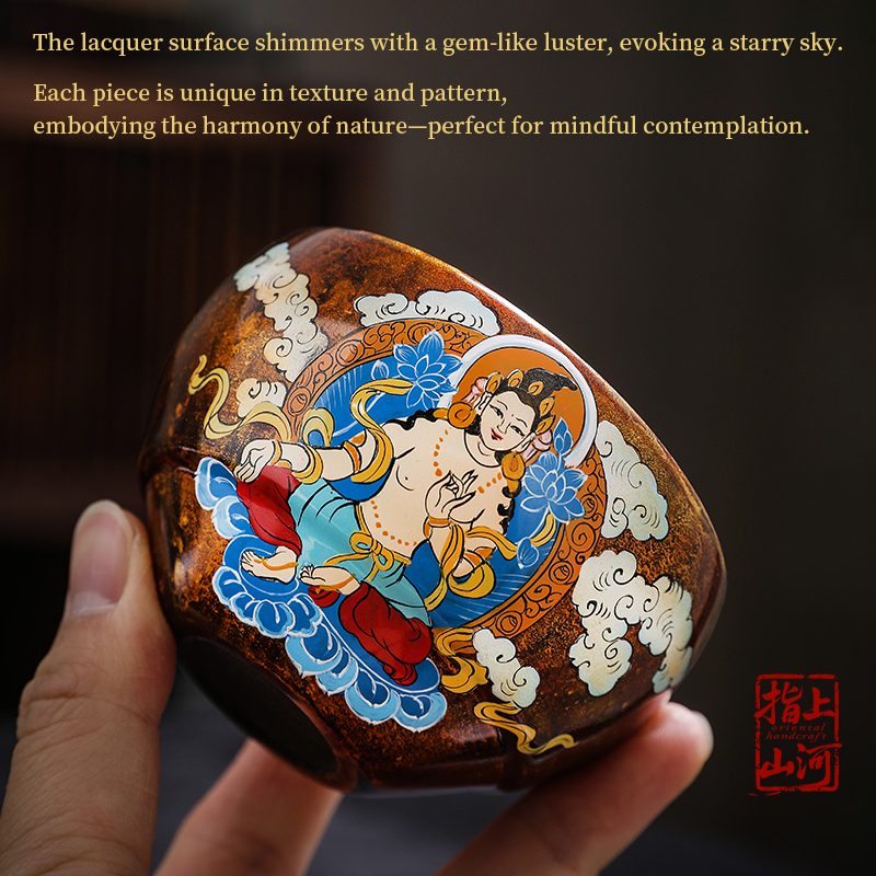 Handmade Lacquer Hand-Painted Thangka Chanding Cup (Zen Meditation Cup) – Chinese Urushi Art | Oriental Home Decor Gift