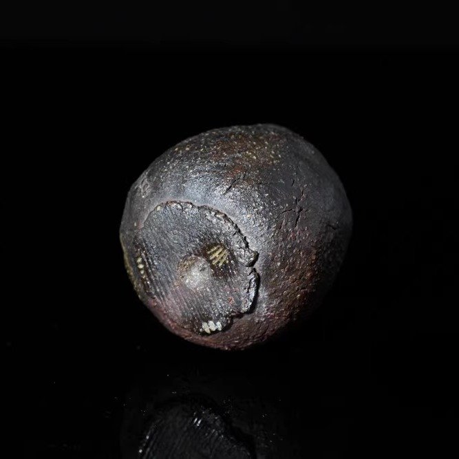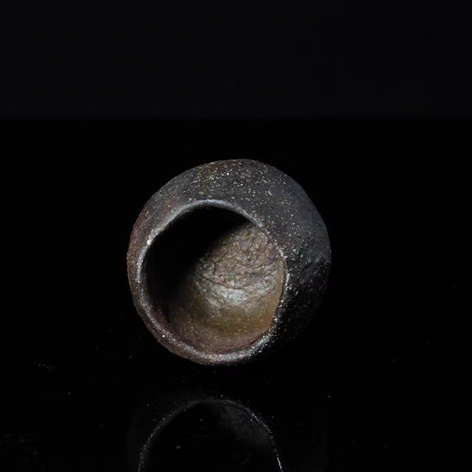 Crafted from premium Yixing raw purple clay and wood-fired in the 28-Kiln Third Firing, this compact tasting cup shows striking fire marks, sandy white textures, and subtle shell stilt traces. A unique tea companion with strong character.