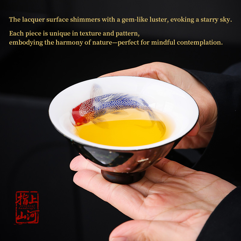 Handmade Lacquer Nightsylvan Single Fish Douli Cup (Bamboo-Hat Cup) – Chinese Urushi Art | Oriental Home Decor Gift