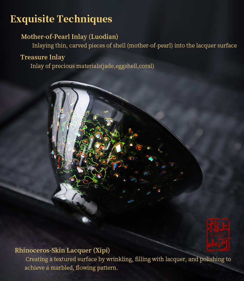 A handcrafted lacquerware piece created with traditional Chinese Urushi techniques, combining natural materials, delicate craftsmanship, and timeless oriental aesthetics. Each item takes over 30–60 days of multi-layer lacquer polishing, making every piece truly unique.