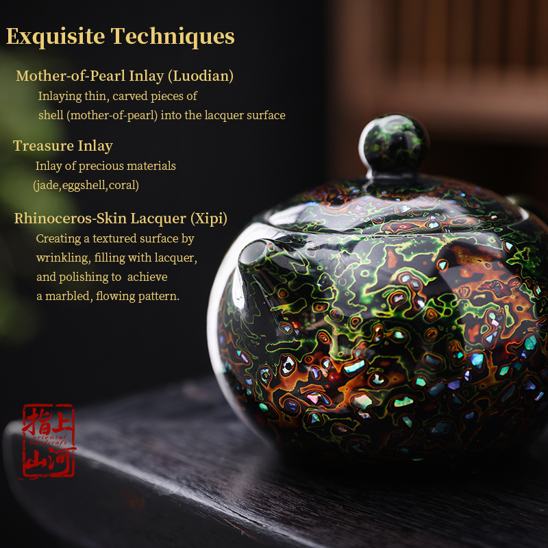 A handcrafted lacquerware piece created with traditional Chinese Urushi techniques, combining natural materials, delicate craftsmanship, and timeless oriental aesthetics. Each item takes over 30–60 days of multi-layer lacquer polishing, making every piece truly unique.