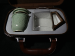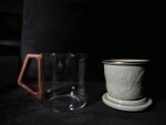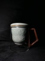 Glass tea cup with Yaozhou celadon lid and Five Bats relief infuser.