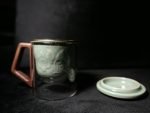 Yaozhou Celadon Five Bats Relief Tea Cup | Glass & Celadon Infuser Cup Inspired by Traditional Chinese Auspicious Symbols